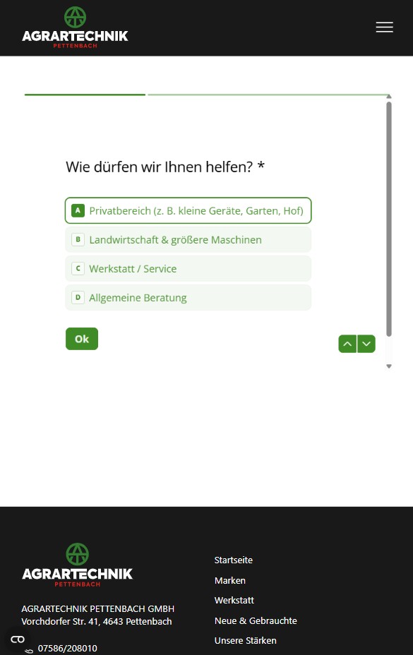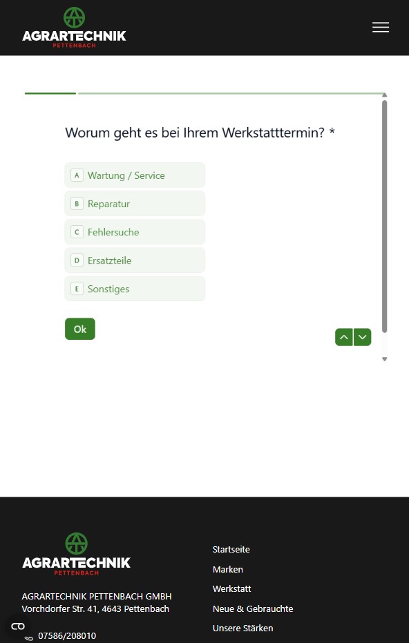 Website mit strukturiertem Anfrageprozess